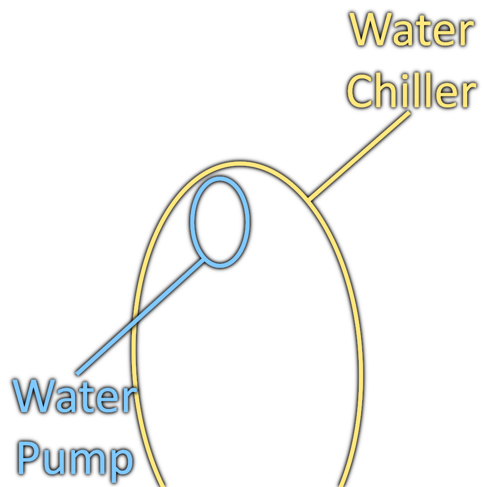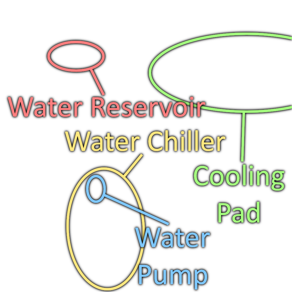 - Place the water chiller, cooling pad, water reservoir, and water pump in your planned locations. The reservoir in particular must be oriented horizontally and be at the loop's highest point, as its role is to collect trapped air while the water cycles.